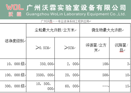 洁净室(区)空气洁净度级别表