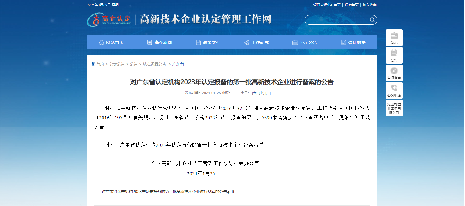 近日,《高新技术企业认定管理办法》(国科发火〔2016〕32号)和《高新技术企业认定管理工作指引》(国科发火〔2016〕195号)有关规定,沃霖实验室是广东省认定机构2023年认定报备的第一批高新技术企业。