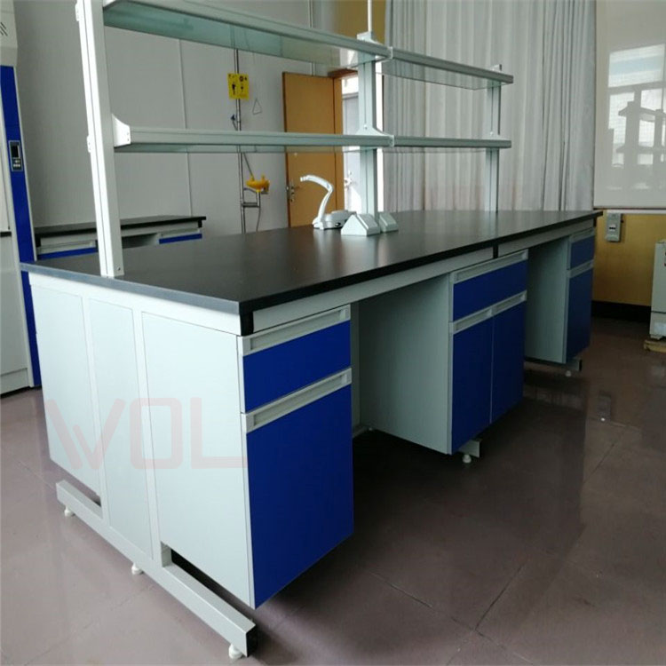 台面耐腐蚀、防水均达到实验室行业优质标准;柜体主体结构采用固定式金属柜体直接支撑台面。柜体及框架采用1.2mm厚优质冷轧钢板,柜体内设一层活动搁板,搁板采用1.2mm厚优质冷轧钢板,外经酸洗磷化后环氧树脂静电粉沫喷涂。